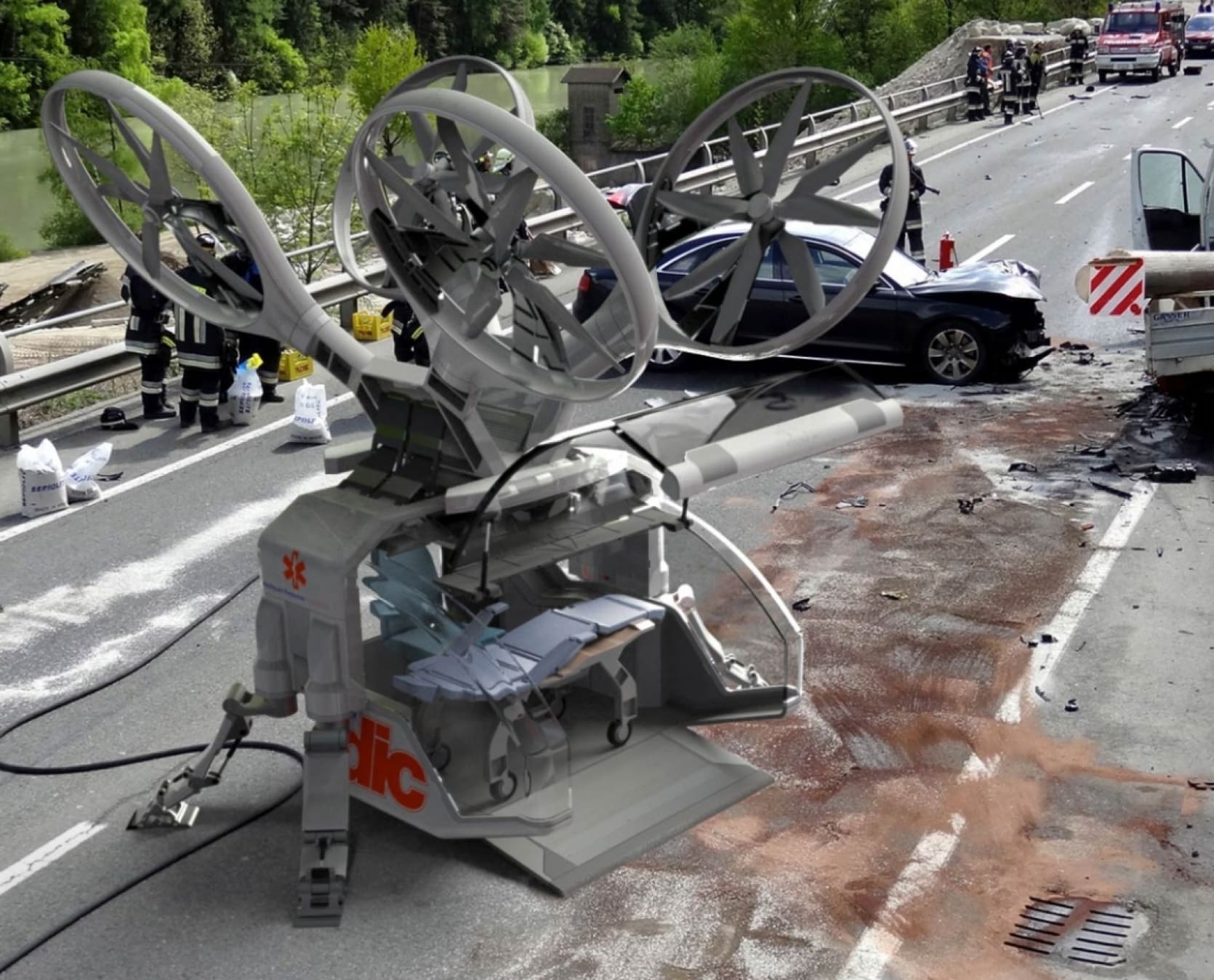 The canton of Geneva wants to have drones developed for patient transport. A drone ambulance will transport up to 10,000 patients between the University Hospitals of Geneva (HUG) and Trois-Chênes Hospital. Until 2025 a prototype could glide through the air.